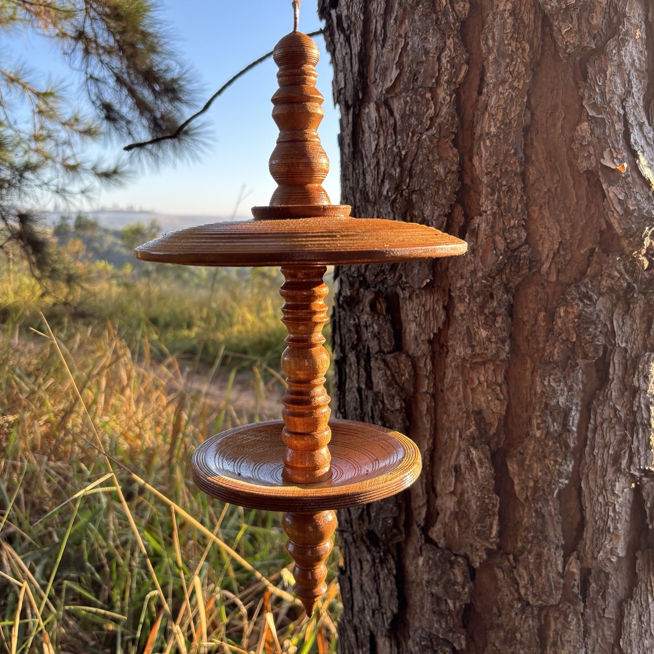 Comedouro para Pássaros Torneado em Madeira Nobre – Peça Artesanal Exclusiva