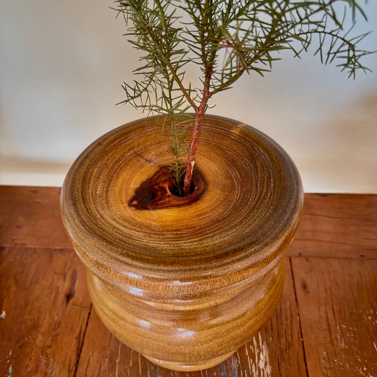 Vaso Artesanal em madeira, peça decorativa.