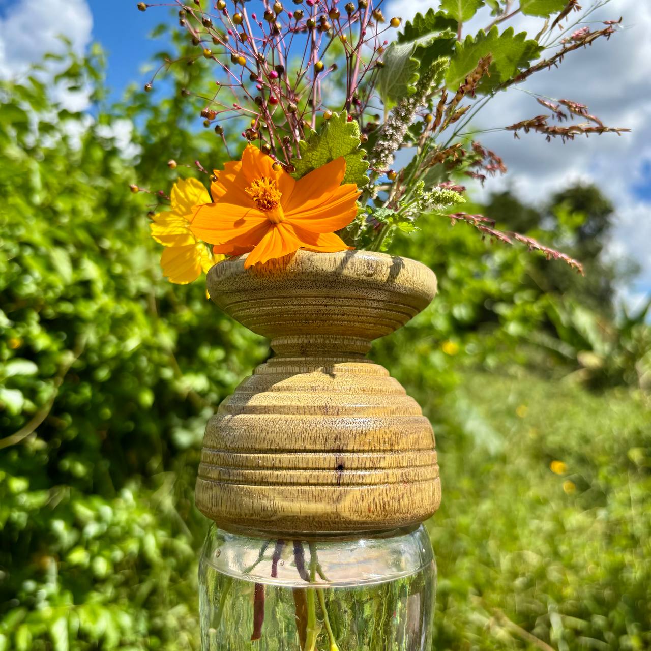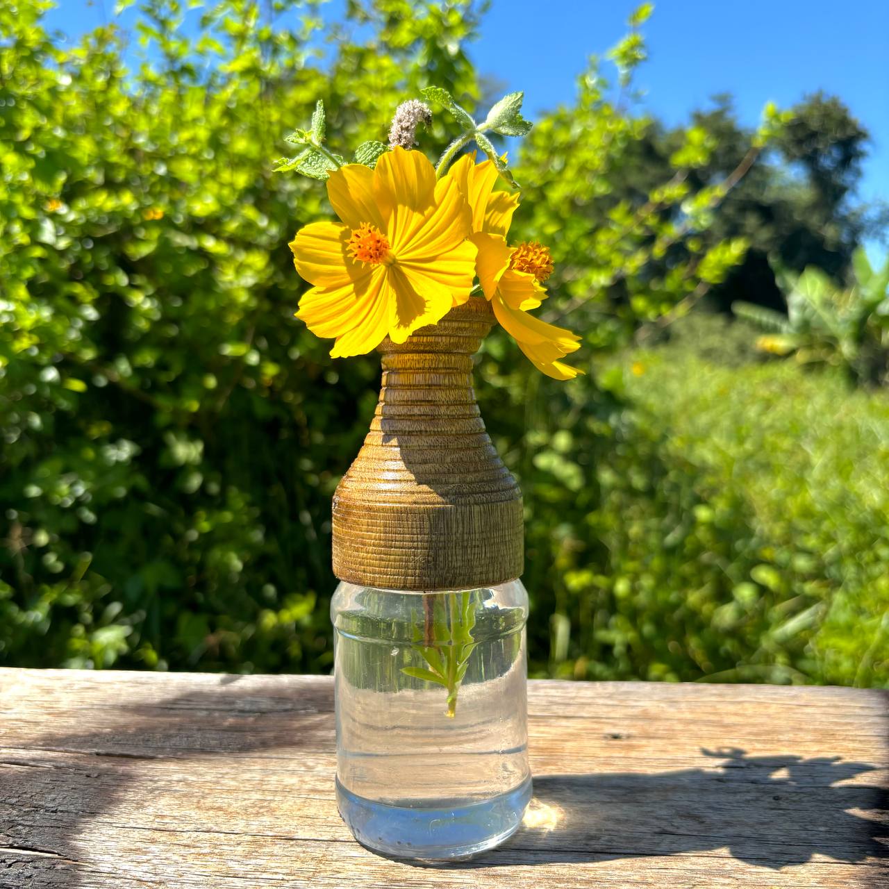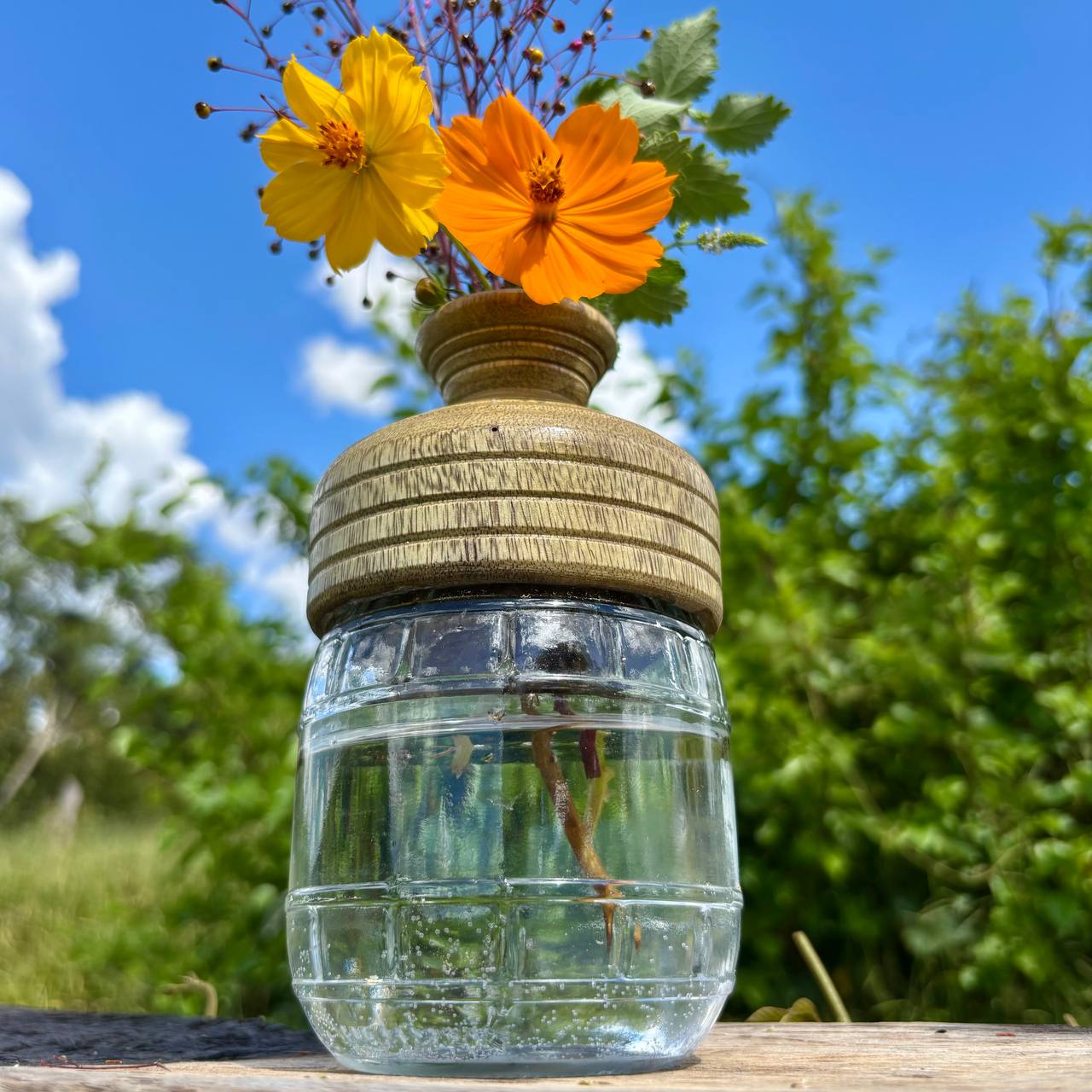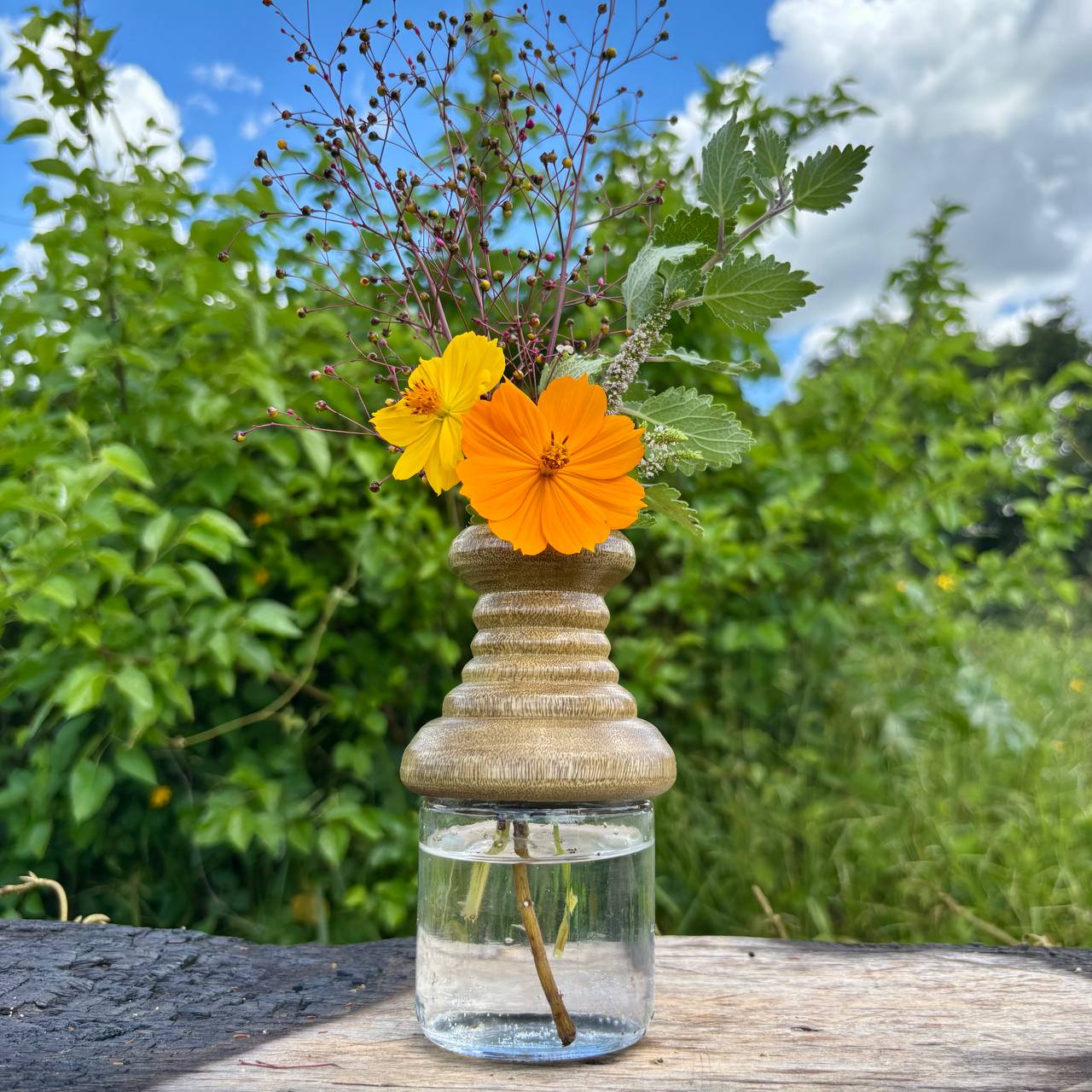 Peça decorativa ao mesmo tempo que prática e fácil: parte de madeira se encaixa no vidro. Fácil manuseio para o dia a dia, limpeza e trocar água.